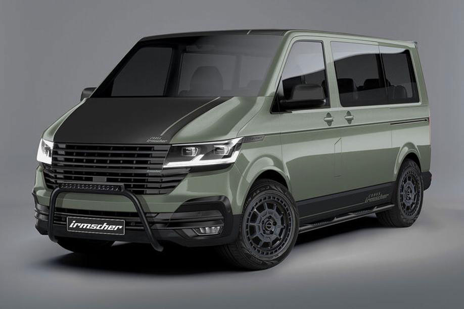 Beim hier gezeigten VW T6.1 Camper im Offroad-Look liegen die angebotenen Umbauten im Bereich von 2.000 bis 9,500 Euro. Im Einzelnen bietet Irmscher einen Frontschutzbügel, Seitliche Schutzleisten, etwas Folierung und spezielle Alus an, die dem Bus optisch einen eigenen Auftritt verleihen.