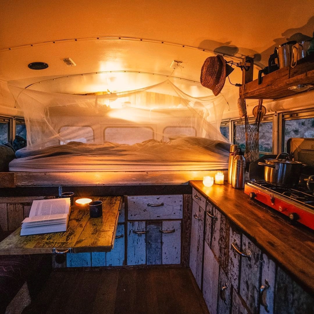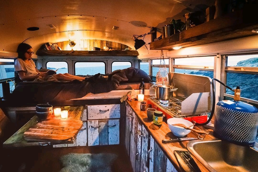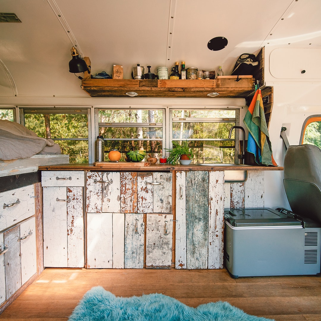 Dazu muss man wissen, dass weder Kai noch Julie Erfahrung beim Ausbau eines Busses zum Wohnmobil hatten. Doch sie machten sich ans Werk, lernten von anderen Ausbauern aus Youtube-Videos und verwandelten den alten Schulbus zu einem echten Schätzchen. Ok, der Ausbau dauerte 800 Stunden, der Kauf eines fertigen Campers wäre damit deutlich schneller über die Bühne gegangen, doch das Ergebnis wäre garantiert nicht halb so cool gewesen.