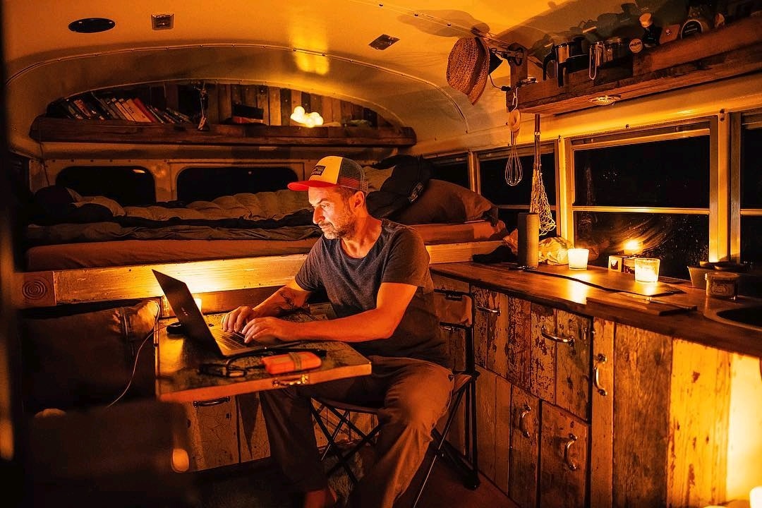[adrotate banner=“1″]Inzwischen wohnt Kai dauerhaft im Bus und reist durch Europa. Als Filmemacher ist er ein Paradebeispiel eines digitalen Nomaden. Wenn es gilt, einen Drehort oder Kunden zu besuchen, parkt er den Bus auf einem bewachten Parkplatz, fliegt zum Termin, kehrt zurück zu seinem Bus und fährt weiter. Allerdings hat Kai immer noch eine „Base“ in Berlin, die er auch nicht missen will.