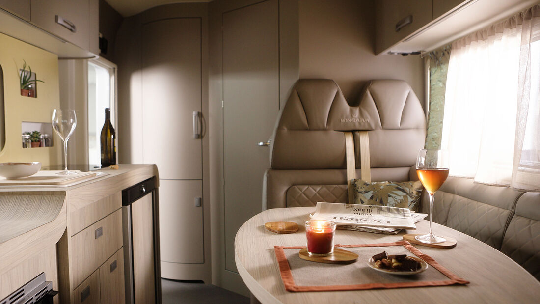 Fest steht: Der Wingamm Oasi 540.1 N kommt für die neue Saison mit einigen Verbesserungen auf den Markt und noch immer punktet er mit einer großen L-Sitzgruppe, einem längs verbauten Hubbett und einem luftigen Raumgefühl – trotz der geringen Abmessungen.