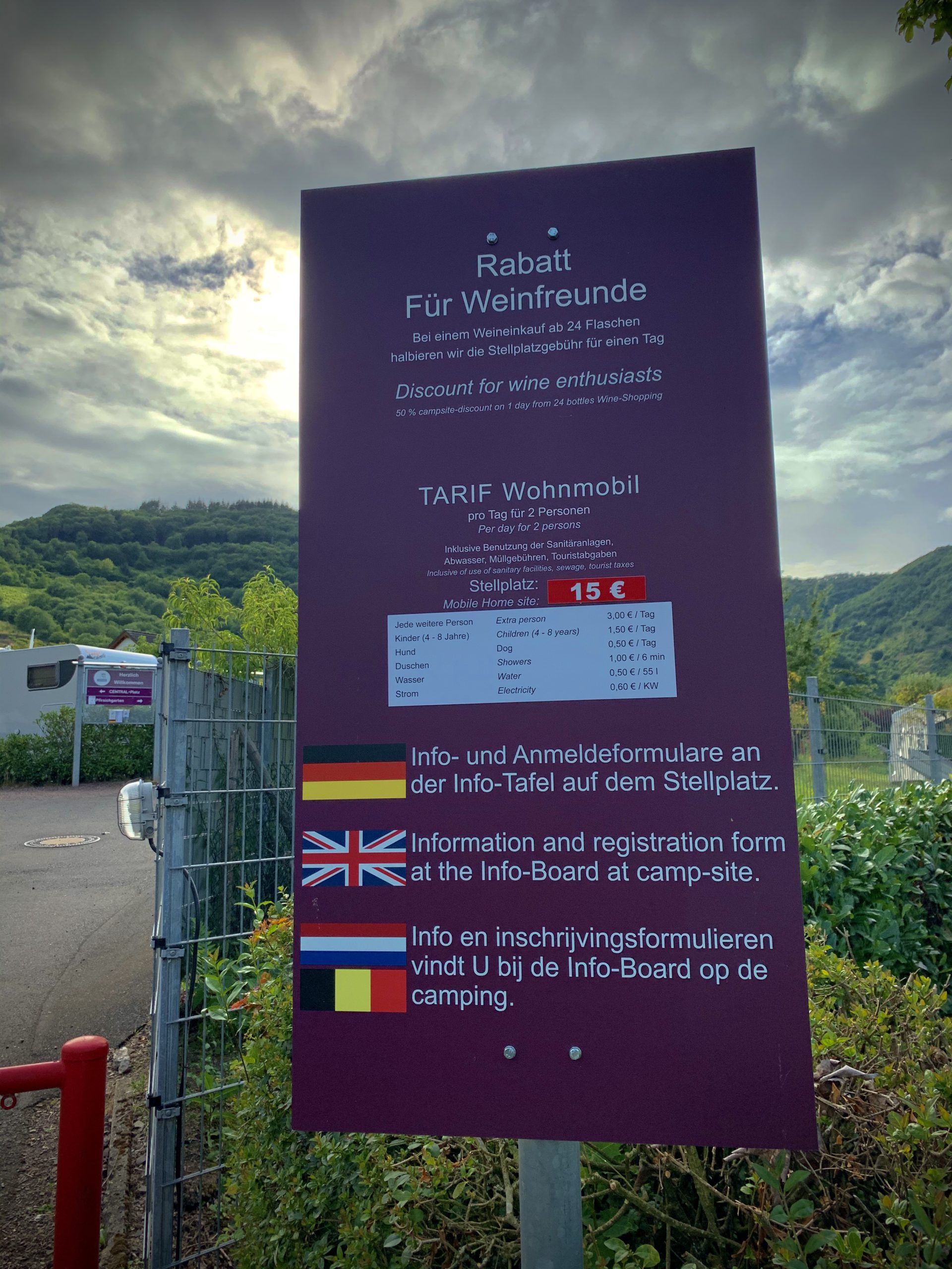 Die günstige Lage zur Moselschleife macht den Platz für alle interessant, die sich dieses Ausflugsziel mal ganz entspannt aus der Nähe betrachten wollen. Der Fußweg zum Aussichtspunkt „Gipfelkreuz“ dauert auf dem Moselsteig eine gute Stunde und führt mitten durch die Weinberge.