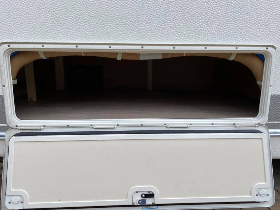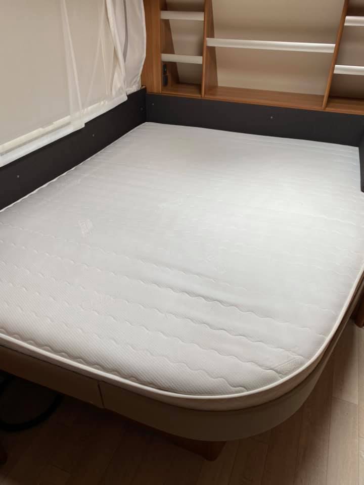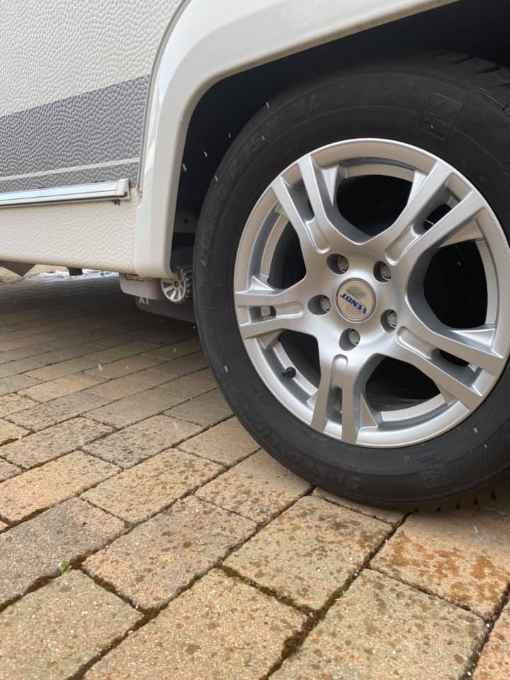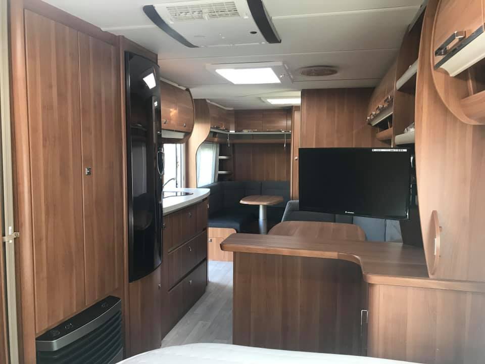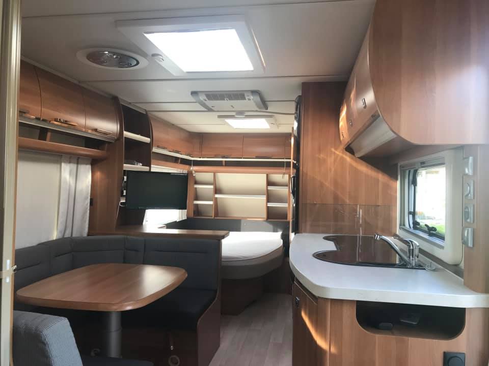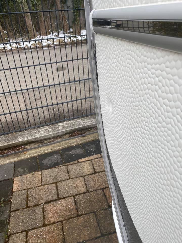 Es erwartet Sie ein Top ausgestatteter Wohnwagen, der lediglich eine ganz kleine Delle auf der rechten Seite hat, die nicht weiter auffällt.