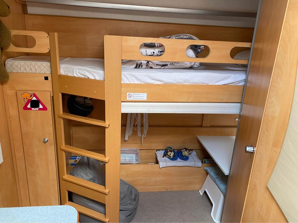 - Das untere Stockbett ausgebaut und zum Kinderzimmer umgebaut
