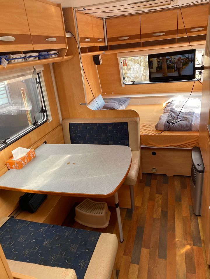 Der Wohnwagen (EZ 2009) ist in gutem, gebrauchten Zustand und hat uns sowohl auf Reisen im Sommer wie im Winter als auch als Wochenenddomizil 11 Jahre gute Dienste geleistet. In diesen 11 Jahren haben wir diverse Umbaumaßnahmen vorgenommen.