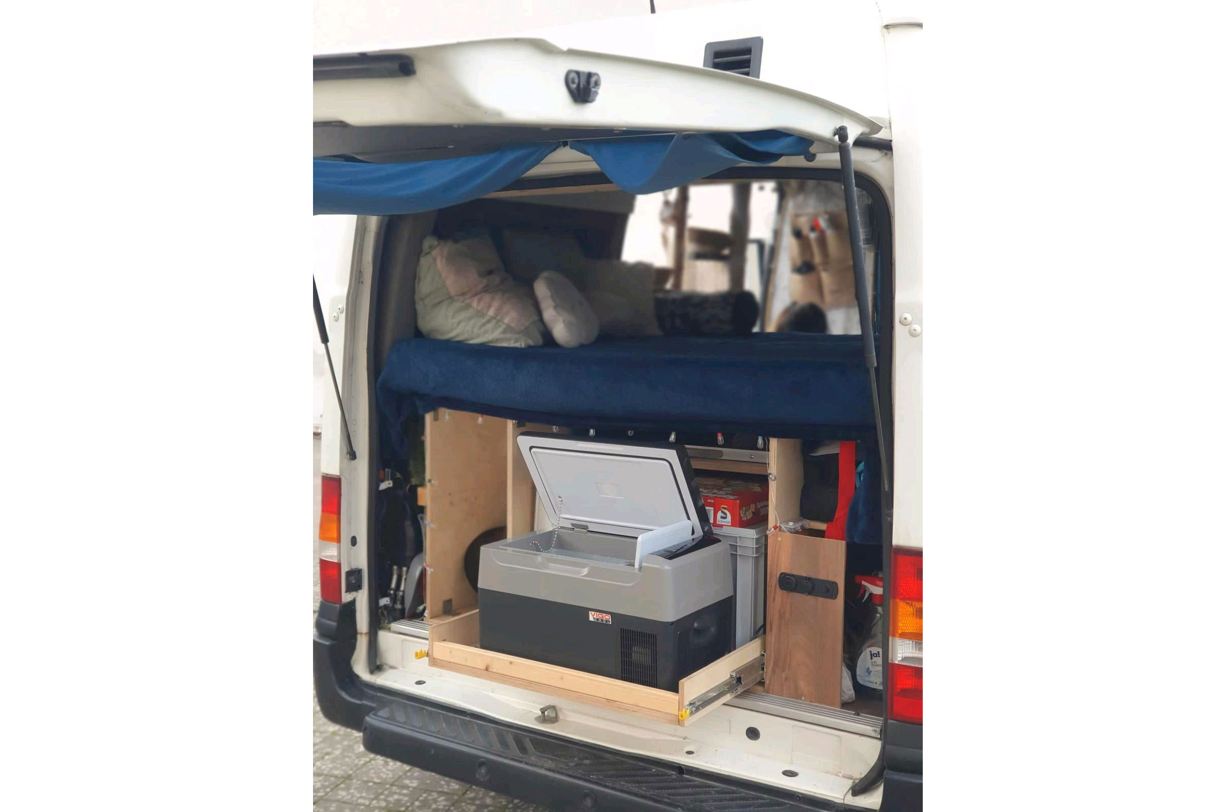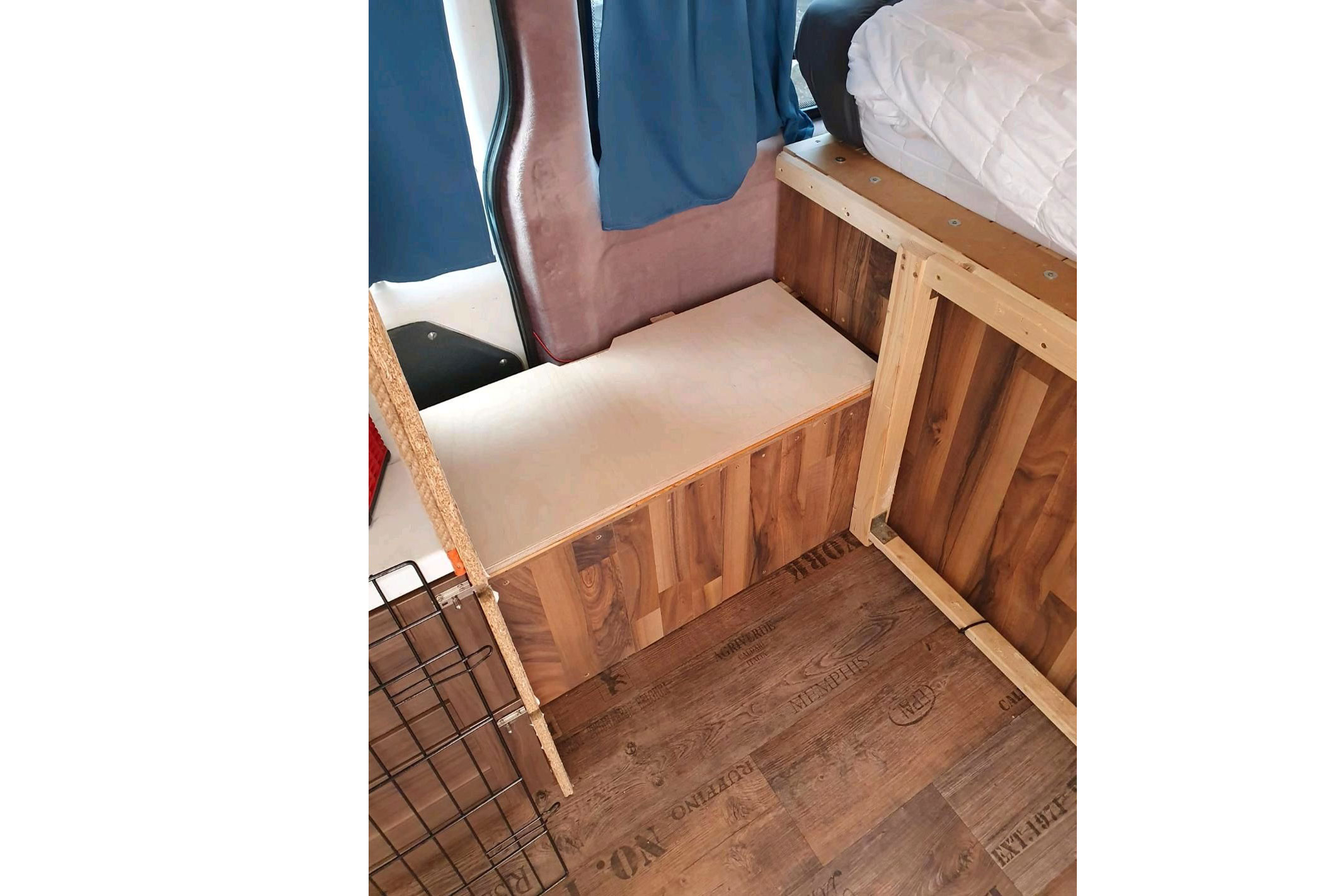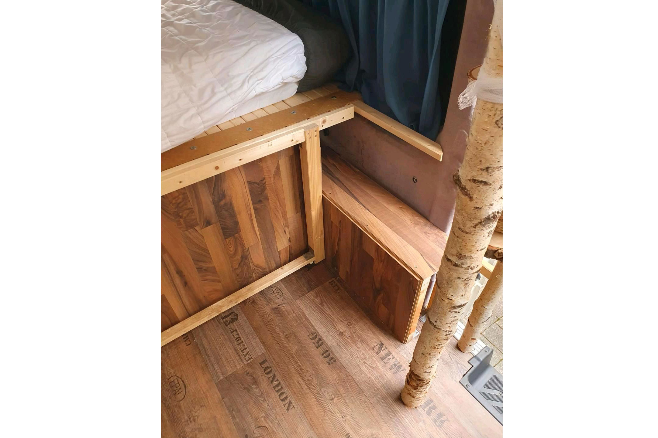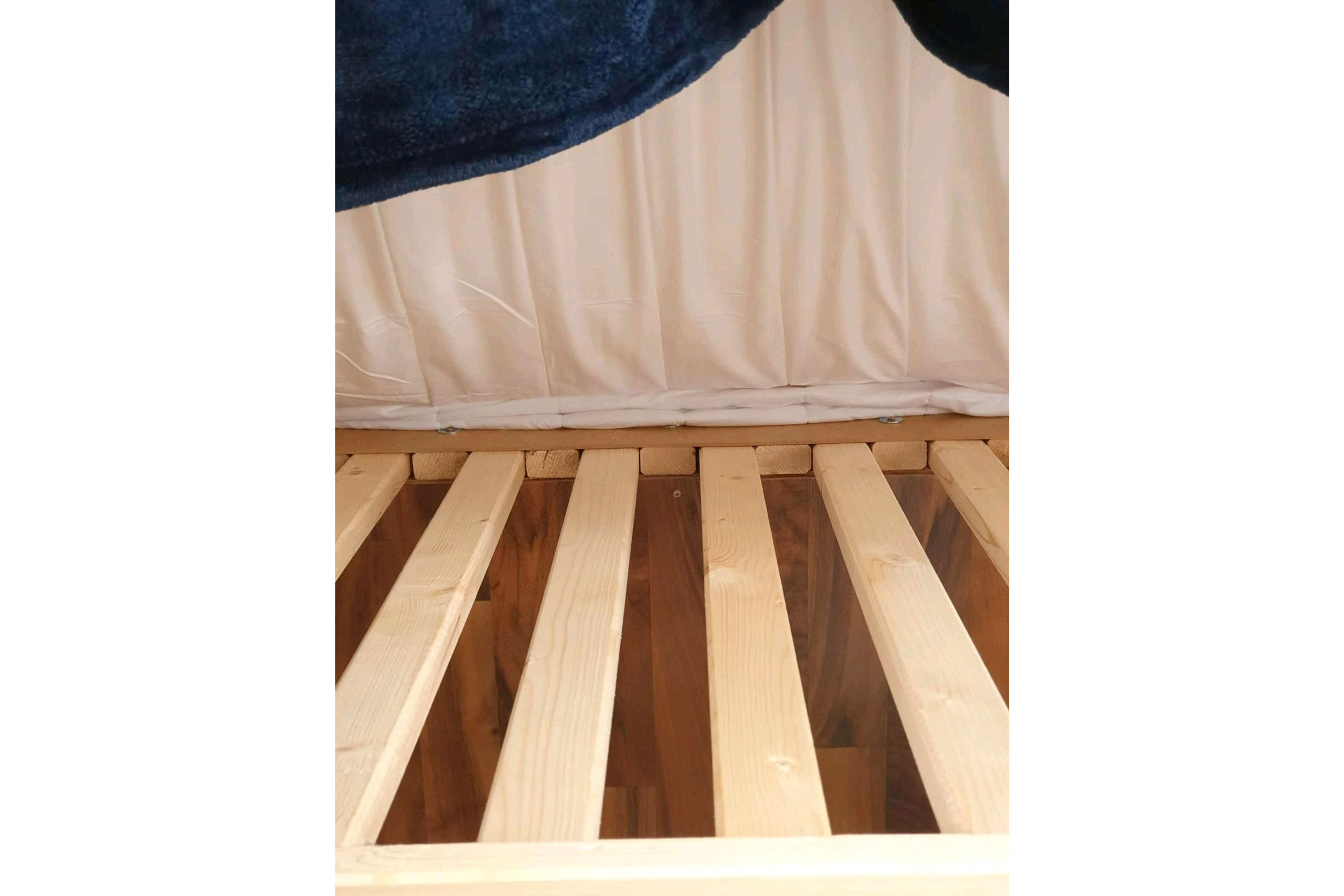 – wenn man das Bett auszieht, hat man unter dem Bett noch mal Platz für zwei mittelgroße Hunde/ oder Stauraum.