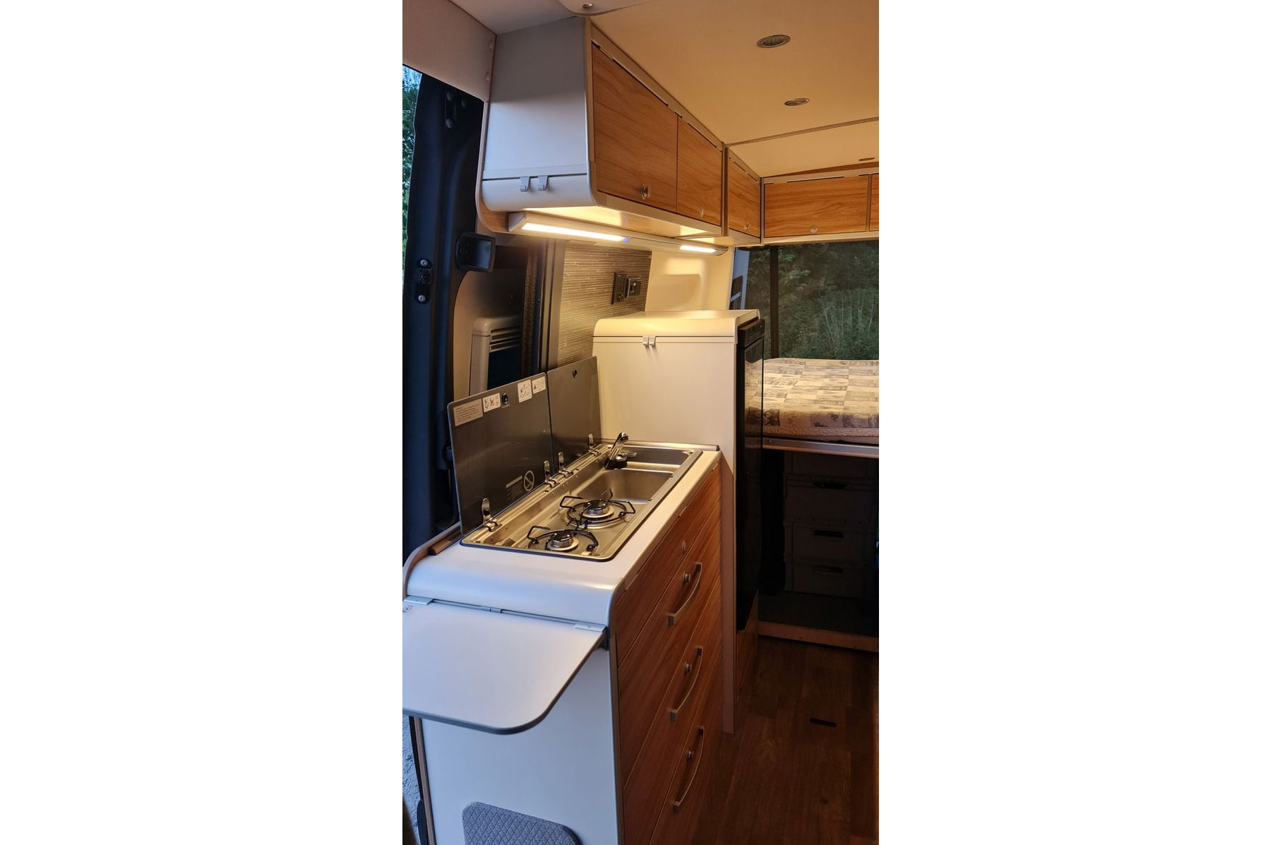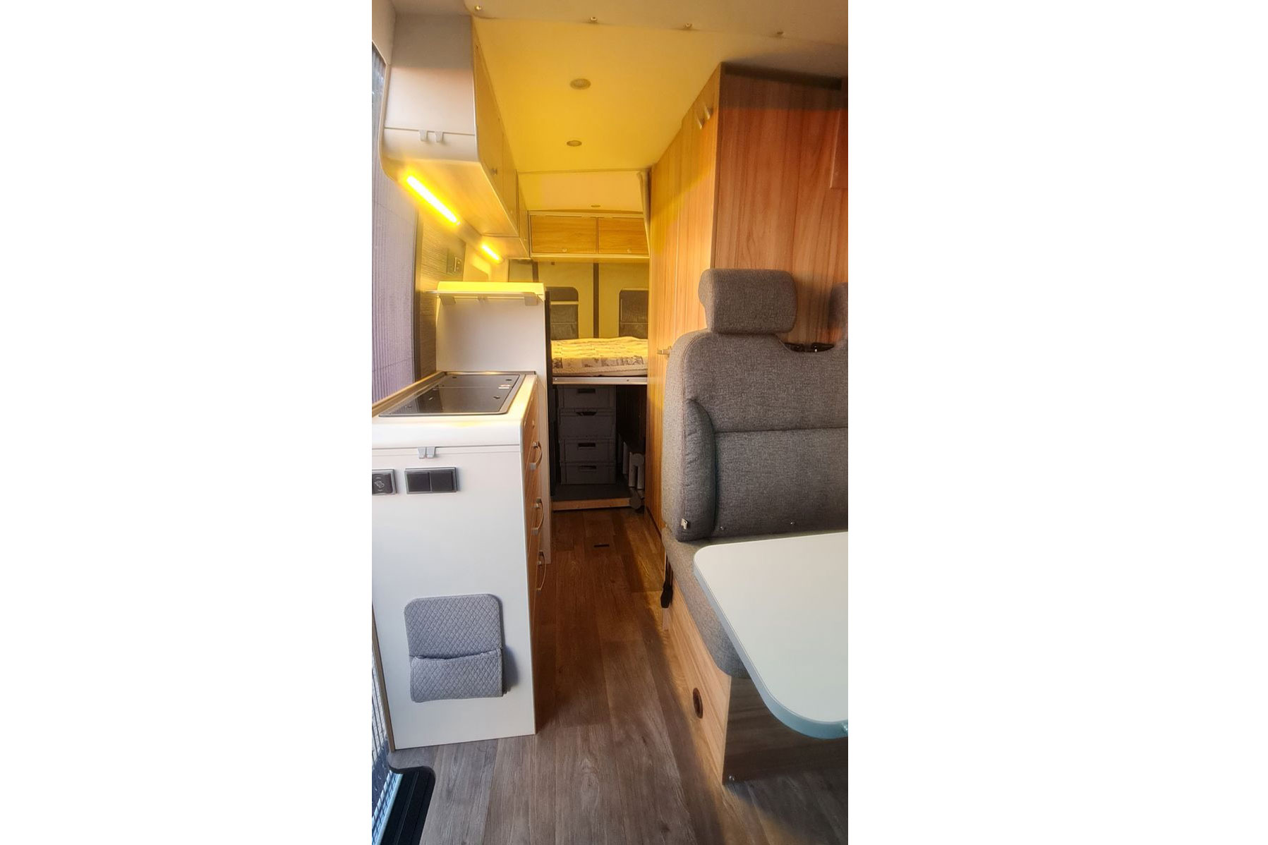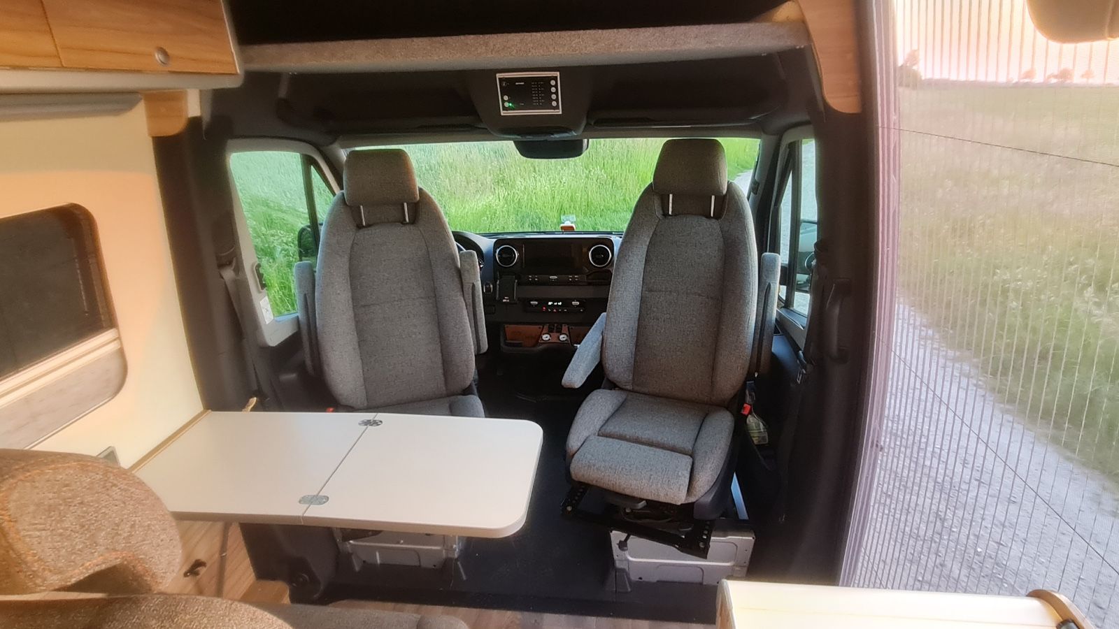 (Abwassertank isoliert und beheizt, Wohnwelt HOME (2 Kissen und Stofftasche), Spannbettlaken Heckbett, Holzlattenrost in der Dusche)