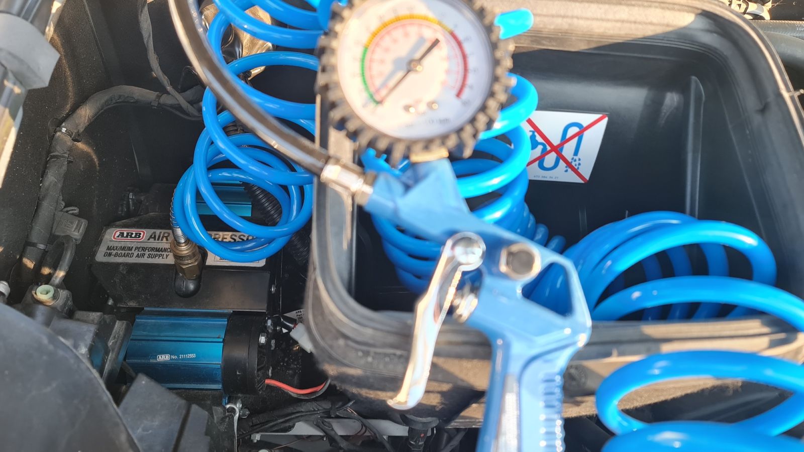 -ARB Twin Kompressor mit 10m Luftdruckschlauch zur Anpassung des Luftdrucks unterwegs